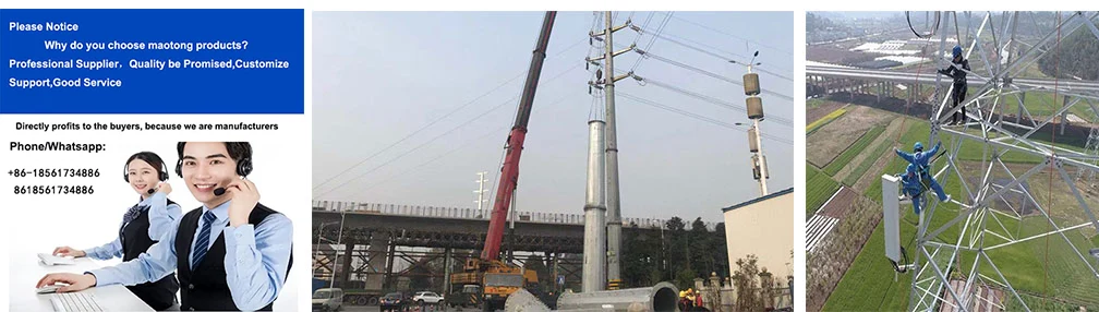 Mao Tong on ammattimainen kiinalainen 220KV-putoamispysäytyslinjan teräspylvästornin valmistaja ja toimittaja. Teräsputkimaisella tornirakenteella on suhteellisia teknisiä ja taloudellisia etuja ja se soveltuu suuria kuormia kantaviin voimansiirtotorneihin.